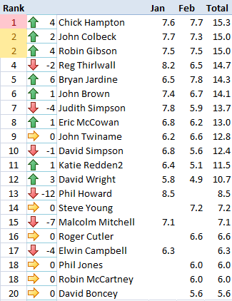 Full results and the leader board…