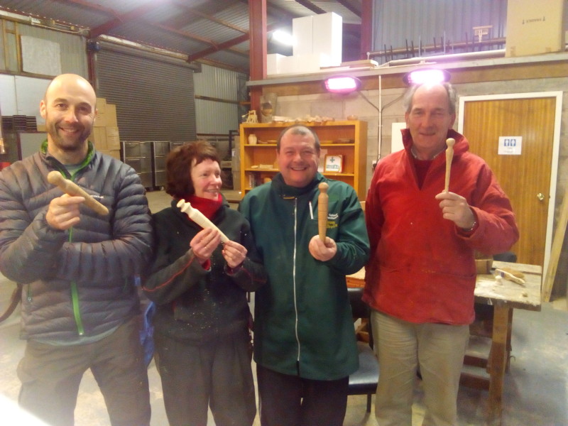 Half way through Beginners Woodturning course 1 of 2016. 12 February 2016 Our lovely course members – beginners woodturning 1 of 2016. Half way through, and completed a spindle turning project.